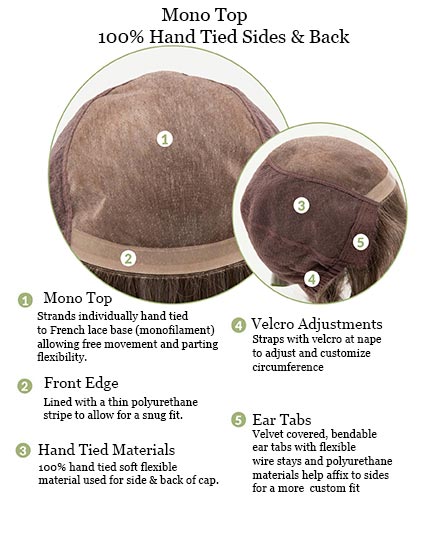 - Breathable monofilament top - 100% hand tied to a breathable monofilament base that simulates natural hair growth while allowing for free movement and parting options.