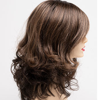 Sonia by Envy is a sultry, carefree shoulder length style, smooth on top ending with luscious wavy curls and a sweep of face framing fringe.
