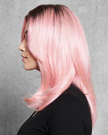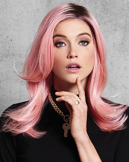 Pinky Promise by Hairdo is a breezy below the shoulders style whose long dark rooted layers gradate to a striking fantasy color pink while softly framing the face.