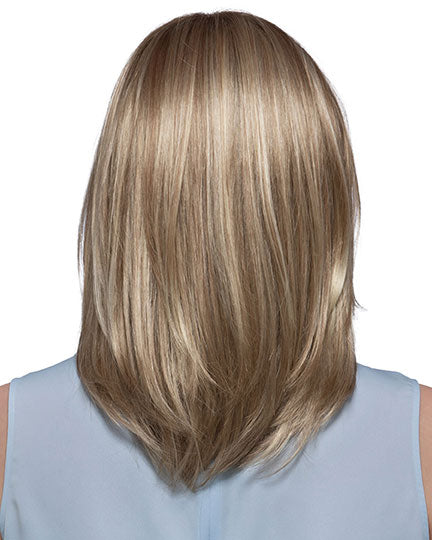 Hudson by Estetica Designs is a smooth, straight medium long style of soft layers: shorter, shoulder skimming face framing layers with longer layers in the back.
