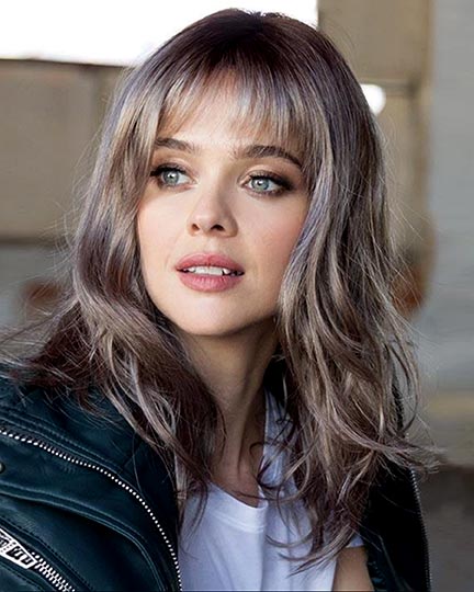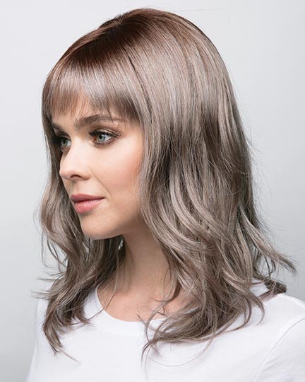 Nakia by Rene of Paris has long, flowing, shoulder length layers with natural soft waves and face framing fringe.