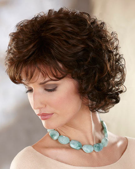 Kayla by Henry Margu has lots of soft layers of curls with face framing fringe bangs.