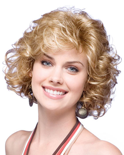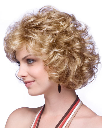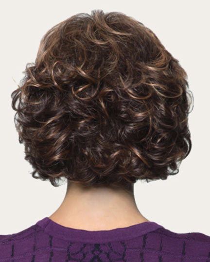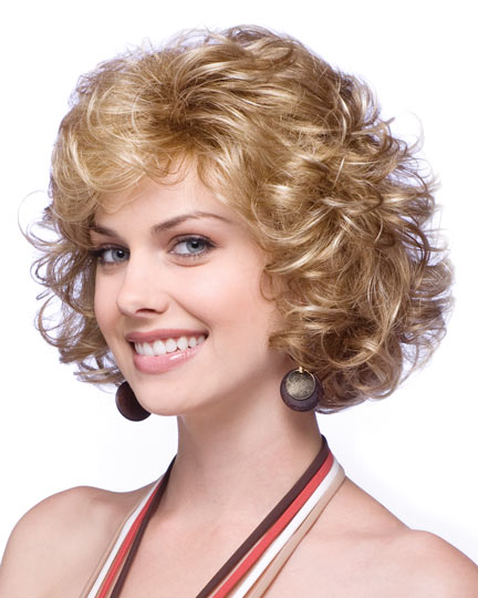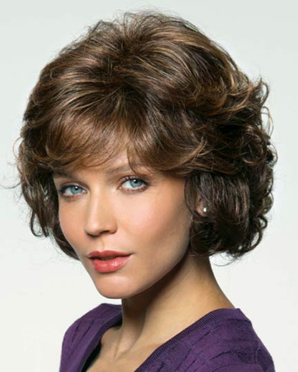 Mariah by Noriko for Rene of Paris is a chin length Bob with abundant soft tousled curls and side swept bangs.