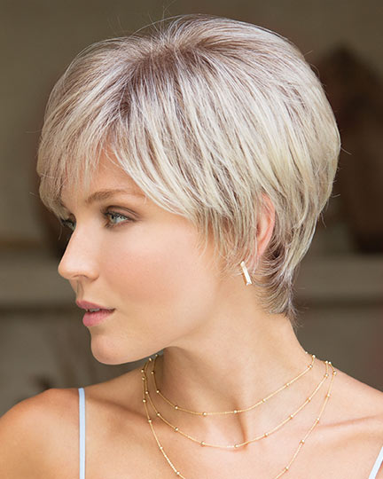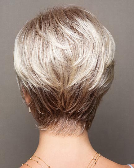 Megan by Noriko for Rene of Paris is a lovely face framing semi-wedge bob style wig with long layering and a tapered nape.