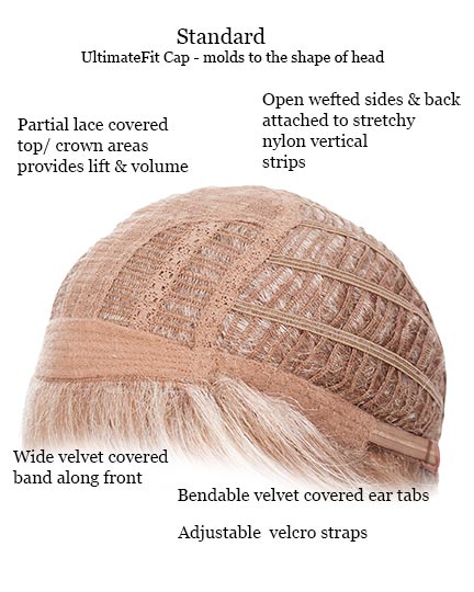 Tony of Beverly Tasha wigs feature a Harp standard cap construction with UltimateFit stretch. This exclusive Tony of Beverly cap design is used when a lighter airy style, such as Tasha is desired.