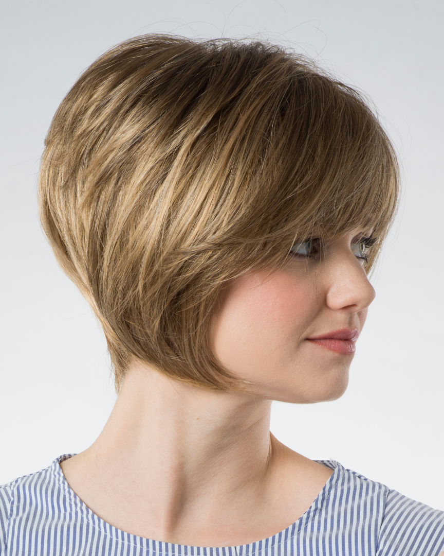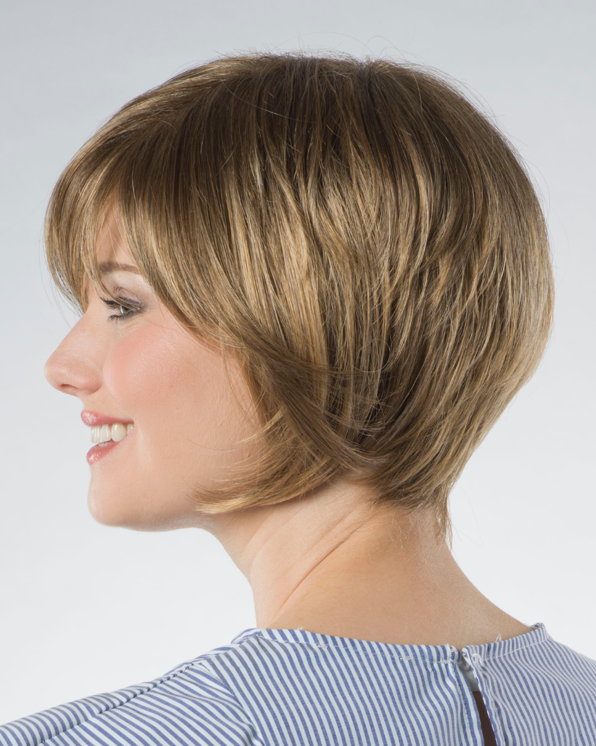 This modern, updated bob features soft layered bangs, a tapered nape, and elongated sides that beautifully frame the face and highlight the cheekbones. Effortless and flattering, it’s designed as the perfect “shake-and-go” style—no fuss, just instant polish. Lightweight and easy to wear, this chic look is ideal for everyday elegance with minimal styling required. Your new go-to wig for both casual and professional settings.
